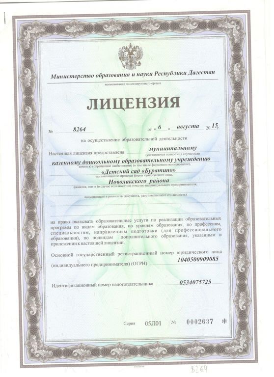 Полное наименование образовательной организации* Муниципальное казенное дошкольное образовательное учреждение "Детский сад Буратино"