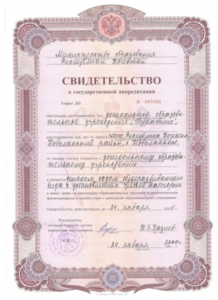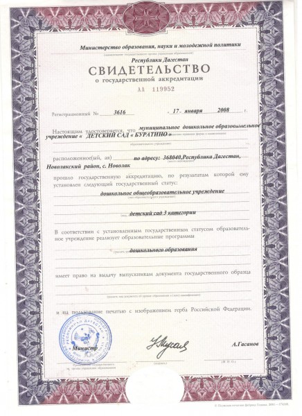Свидетельство о государственной аккредитации